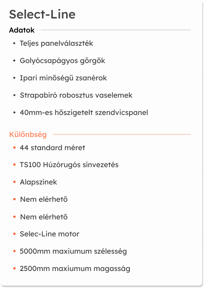 egyedi méretű, színű kívánságok esetén. Select-Line csoportunk az előre gyártott